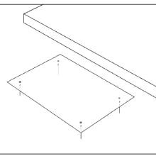 The instruction sheet serves as the drill hole template. Using masking tape, place the template at the desired location underside of your desk. Drill 3/22″ (2.5mm) diameter pilot holes approximately 3/8″ (9.5mm) deep in the 4 locations indicated. Be careful not to drill through the top of the desk.